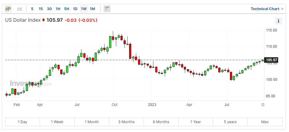 美元指数触及10个月高位 一度突破106关口