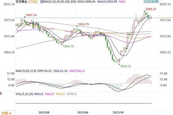 周三(11月1日),由于美联储维持利率不变,并且对其货币政策几乎没有提供有新意的前瞻性指引,黄金虽有震荡表现,最终收盘在1982.49美元/盎司水平,离近期的高点不远。