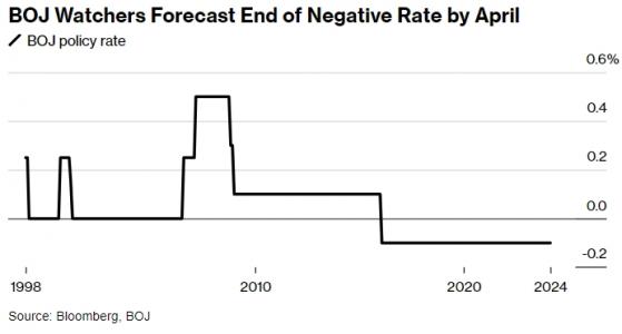 市场普遍展望,日本央行将在4月结束负利率政策。