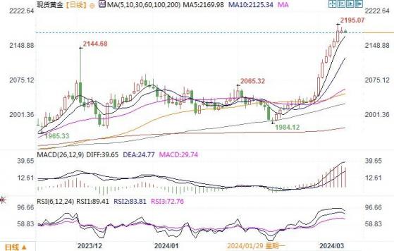 技术层面上,14日相对强弱指数(RSI)在日线图上呈现超买状态,金价可能面临回调的风险。若出现回调,预计金价将首先测试2154美元/盎司的支撑位,即上周五的低点。进一步而言,金价下一个关键支撑位于2146美元,该水平与上周四的低点及2月14日低点1984美元/盎司至历史高点2195美元/盎司反弹走势的23.6%斐波那契回撤位相吻合。若金价跌破2144.60美元/盎司,这将改变当前的看涨趋势,并可能引发金价看空调整。另一方面,黄金市场需要新的积极因素来推动价格上升,特别是在日收盘时突破2200美元/盎司大关,这将有助于金价在未来一段时间内实现更多涨幅。