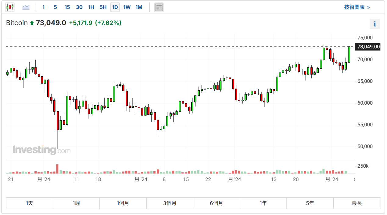 美国大选进入冲刺阶段 比特币暴升7% 站上7.3万美元上方 期权定价显示明日波动幅度达8%